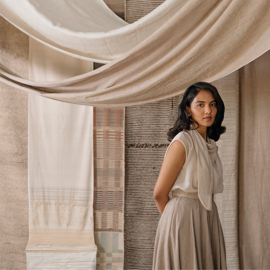 The most recent of them all began with a single garment—born from a moment of quiet frustration, when textiles from outside our borders were being celebrated as the pinnacle of luxury and aspiration. In response, I chose to collaborate with local artisans. Over two and a half months, khadi yarn was handspun, dyed in natural indigo, and woven into a fabric. The resulting blazer, completed in three months, was finished with ceramic buttons—every part of it handmade.