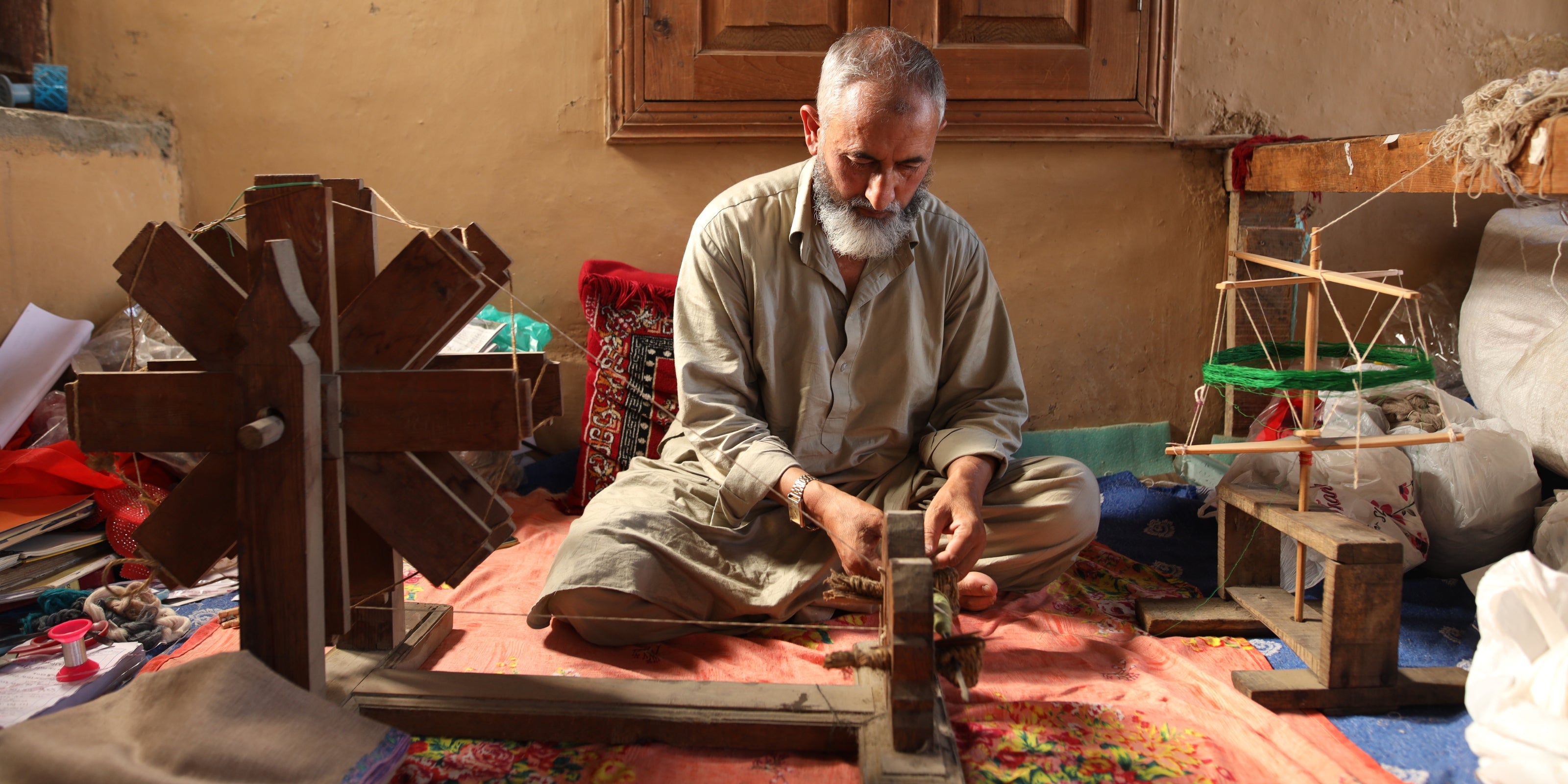In Srinagar, the cleaned wool is carefully hand-spun into delicate yarn on the Kashmiri yinder (traditional wooden hand-spinning tool) by women artisans. This rare and precious hand-spun Pashmina is further woven on traditional looms in individual homes, each product becoming a testament to the time, precision, and unwavering faith and spirit of this fabric.